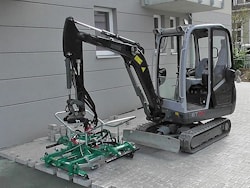Захват для укладки тротуарной плитки Hunklinger P01-3 — профессиональное оборудование немецкого производства, предназначенное для точной и быстрой укладки плиточных покрытий.