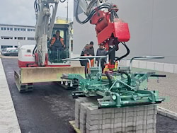 Видео работы захвата для укладки тротуарной плитки Hunklinger HP30